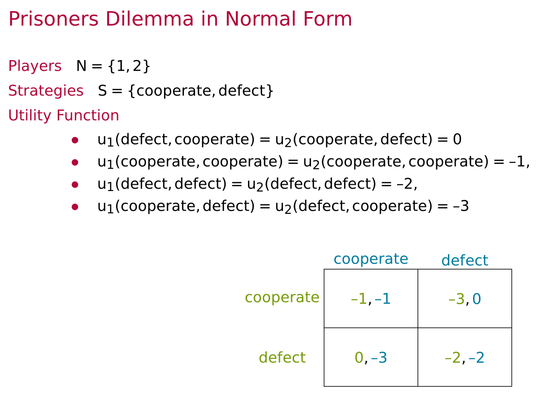 - utility functions mapping a strategy profile to the utility player incurs when player plays strategy