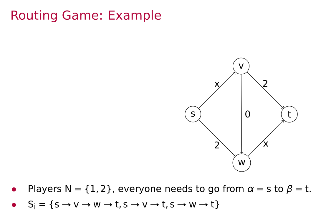 - for each edge , a nondecreasing cost function mapping the number of player taking the edge to its cost