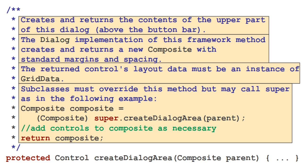 • Prefabricated components: Existing framework classes which must be complete implementations of some interface in the abstract design