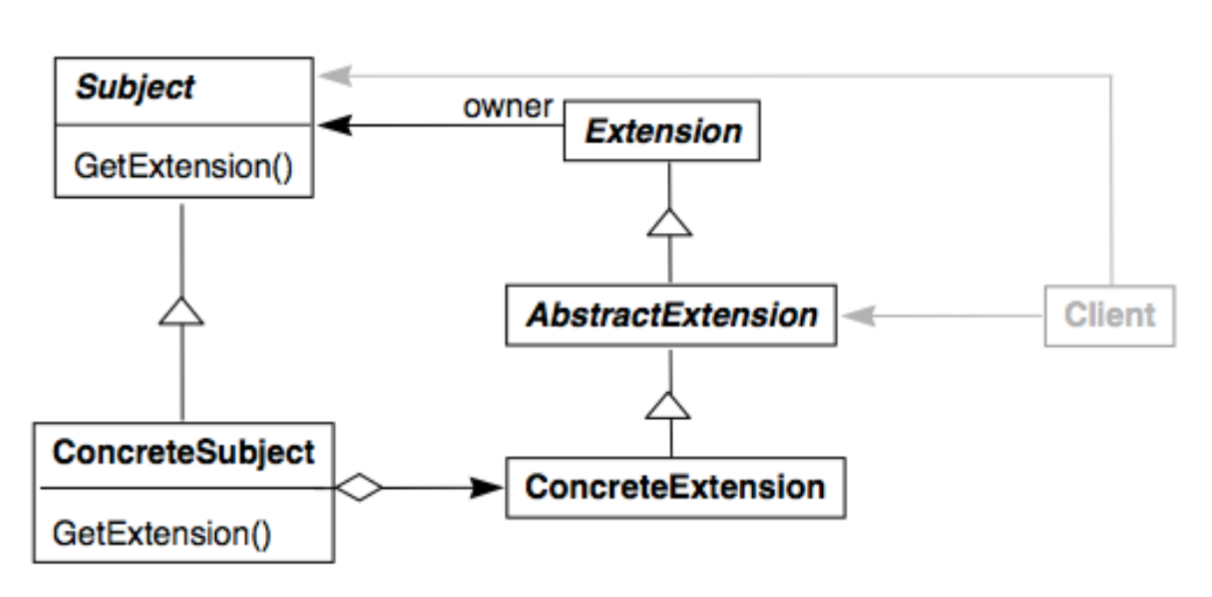 • The Extension Object pattern proposes to package the extended interface into a separate object