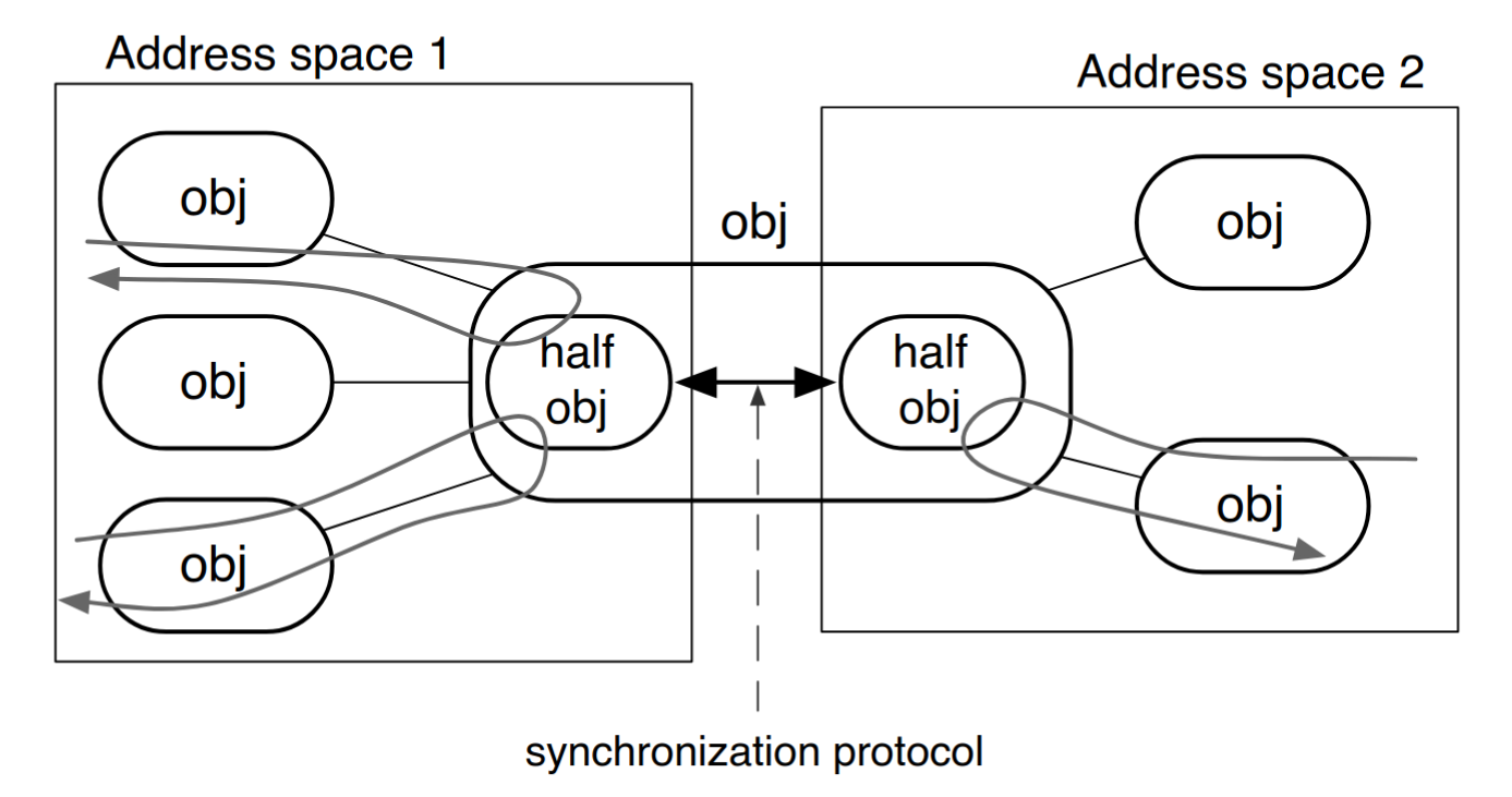 • transparently: hides distribution boundary. preserves identity and provides same interface in each computing context (e.g. address space)