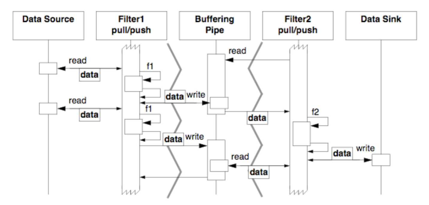 • Data is passed through pipes between adjacent filters