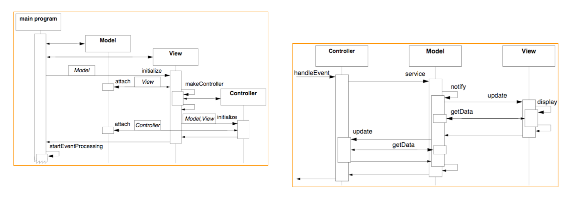 • Views and controllers together comprise the user interface. A change-propagation mechanism ensures consistency between the user interface and the model