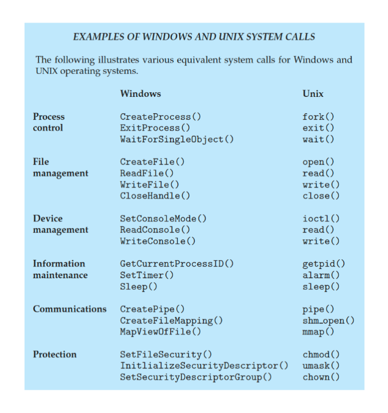 - werden meist mittels einer high-level API verwendet (Windows API, POSIX API oder Java API)