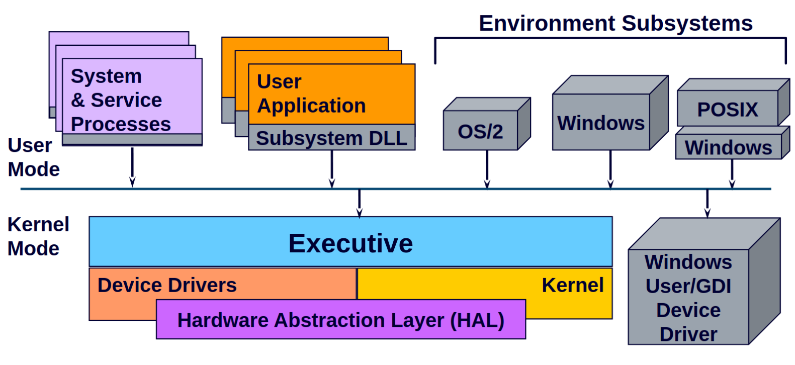 - kann durch Prozesse im User-Mode, die etwa als Hardware-Treiber fungieren, erweitert werden