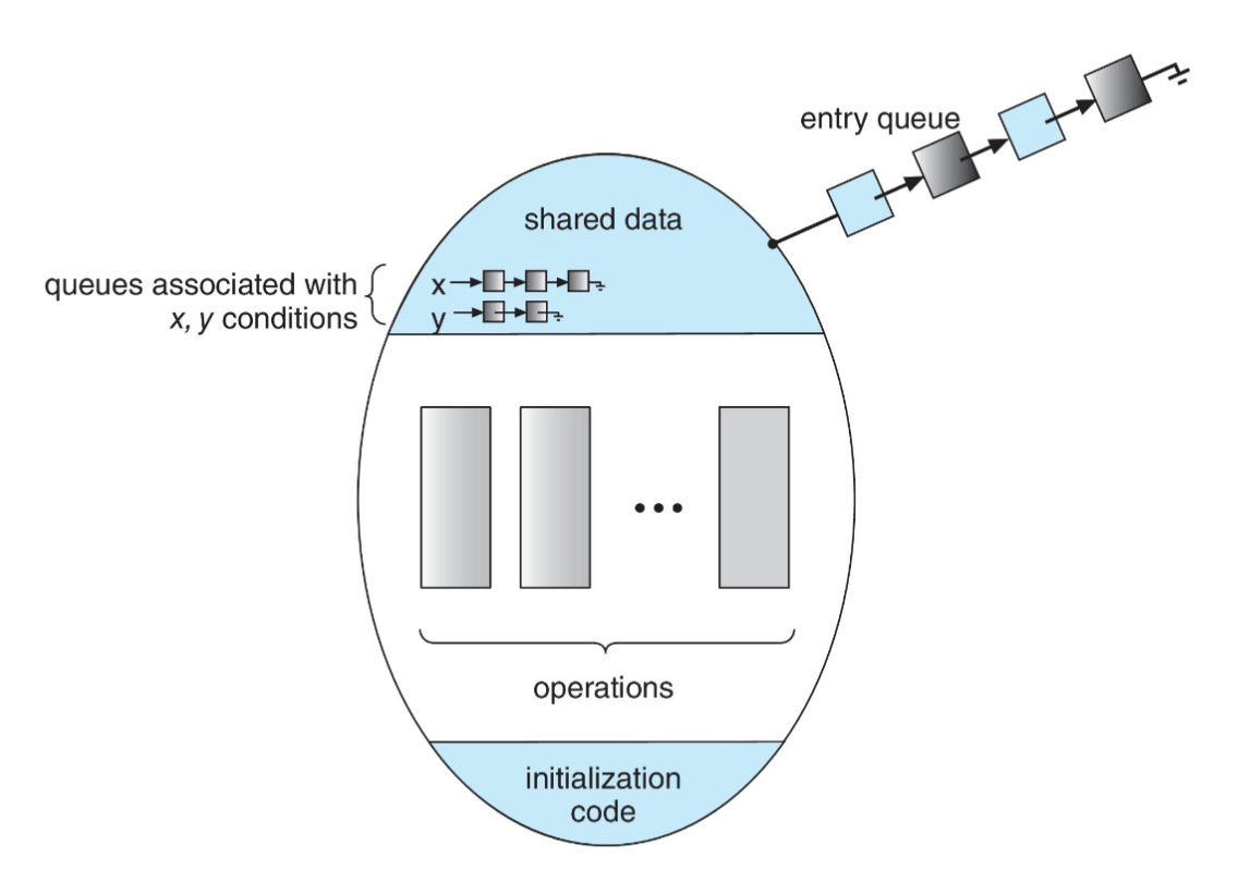 • z.B. condition x mit x.wait() und x.signal(), wobei letzteres eine wartenden Prozess startet (sofern einer vorhanden ist)