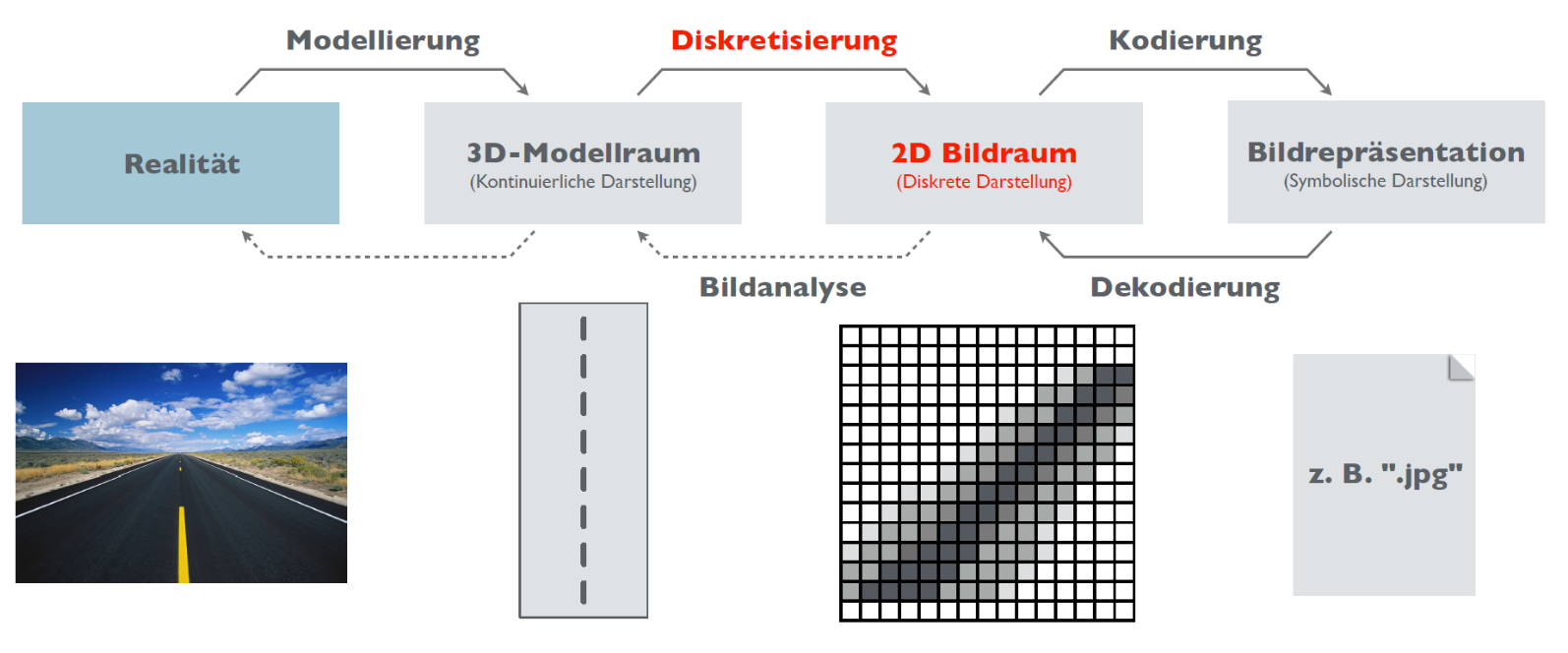 - Realität Modellierung 3D-Modellraum Diskretisierung / Rasterisierung 2D-Bildraum