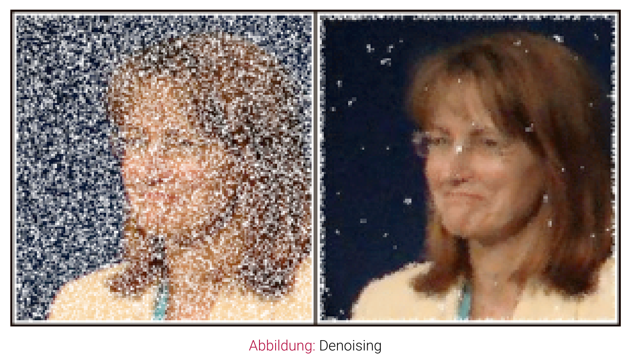 - Denoising: Median-Elemente der nach Helligkeit sortierten Nachbarschaftspixel wird ausgewählt kann Störpixel (z.B. Schwarz oder Weiß) entfernen