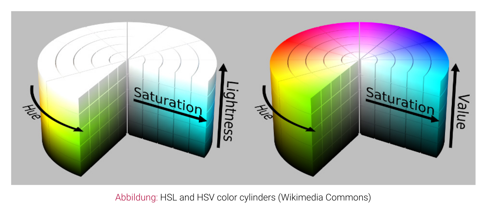 - HSV = Hue-Saturation-Value Color Space (nicht HSL)