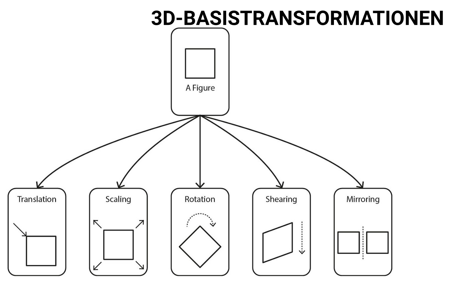 - Homogene Koordinaten nutzen -Matrizen, um alle Basistransformationen als lineare Abbildungen darzustellen