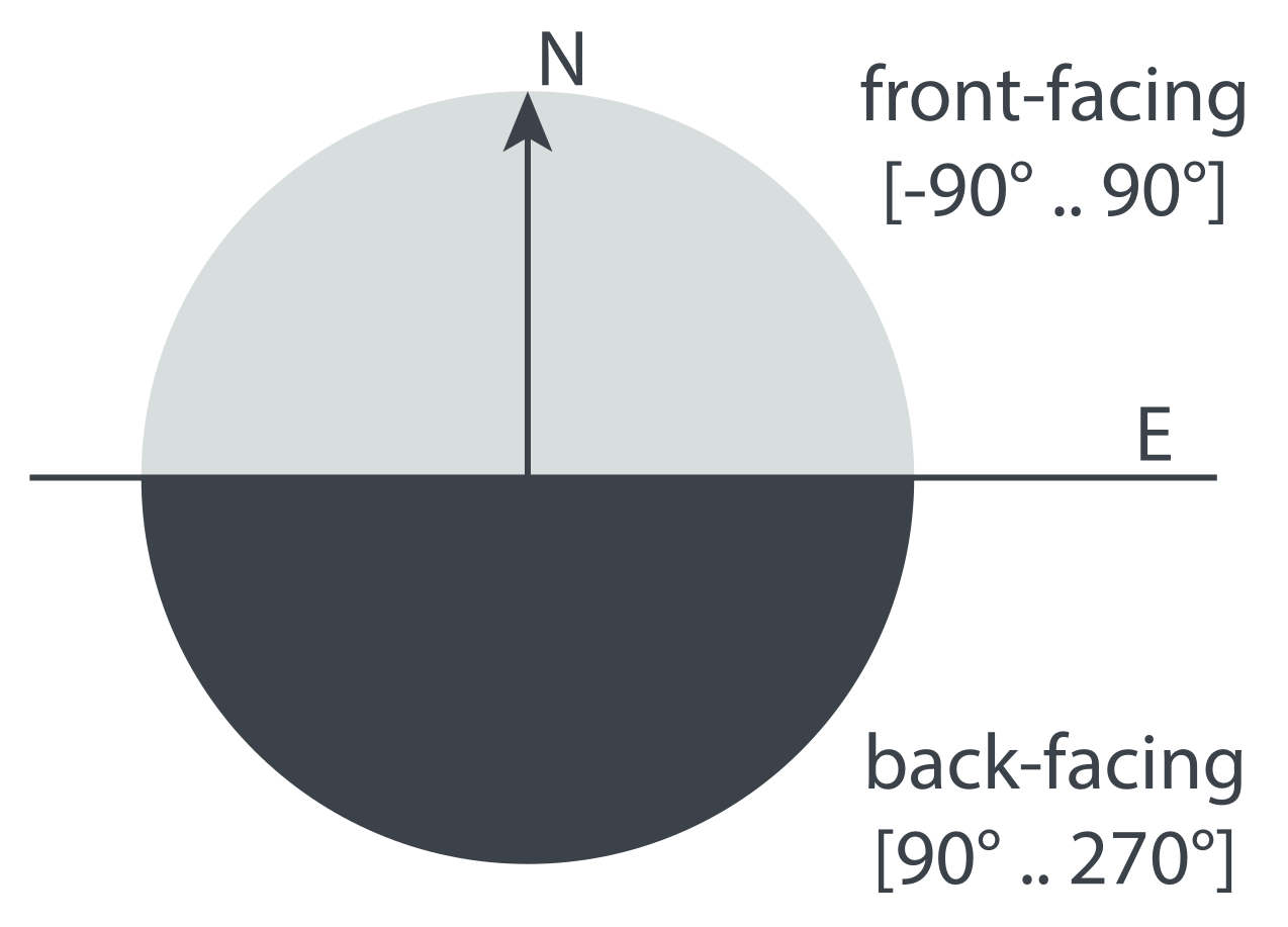 Front-Facing/Back-Facing-Test: lässt sich nun mithilfe der Normalen der vom Polygon aufgespannten Ebenen durchführen: