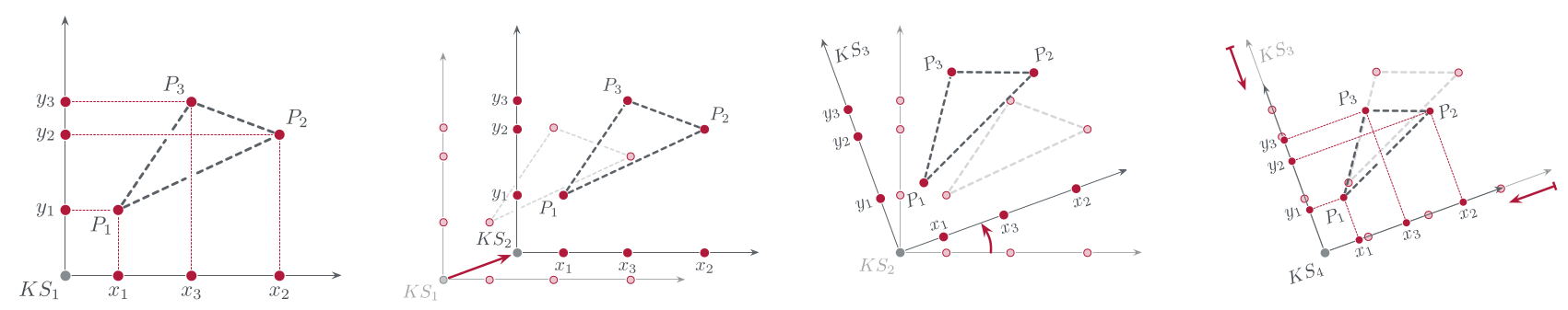 Alternative Sichtweise auf Transformationen: nicht Punkte werden überführt, sondern lediglich Änderung des Koordinatensystems