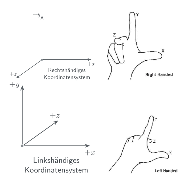 - linkshändiges Koordinatensystem rechtshändiges Koordinatensystem