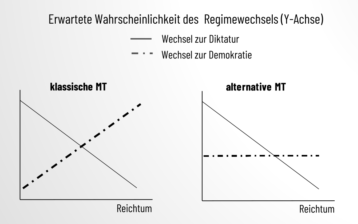 Klassische MT nimmt an, dass Reichtum nicht nur bereits bestehende Demokratien schützt, sondern auch deren Entstehung fördert Sicht ist umstritten (siehe z.B. Singapur und China)