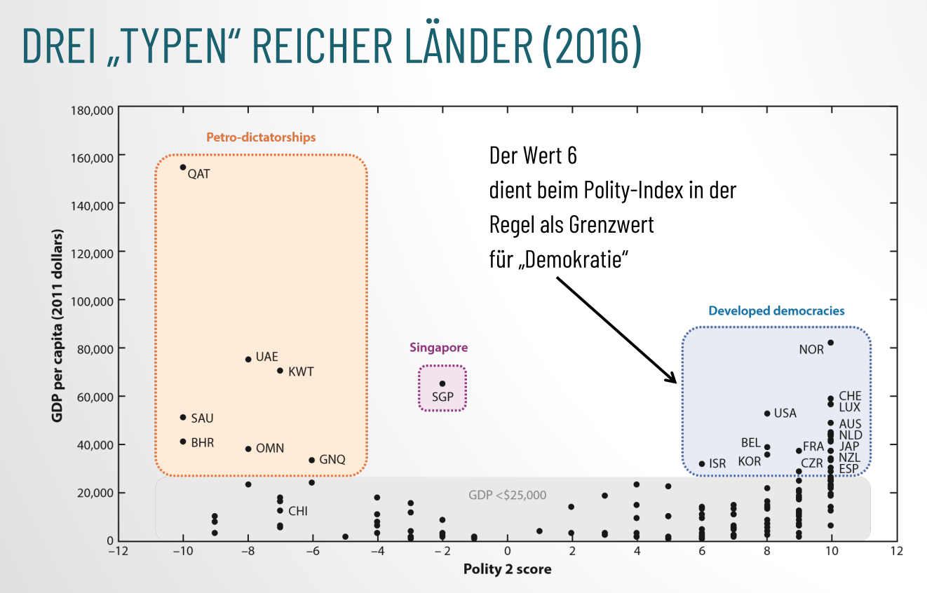Zusammenhang zwischen Reichtum & Demokratie gilt auch nicht, wenn Reichtum auf natürlichen Ressourcen (z.B. Öl) basiert