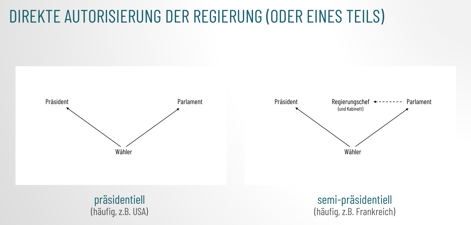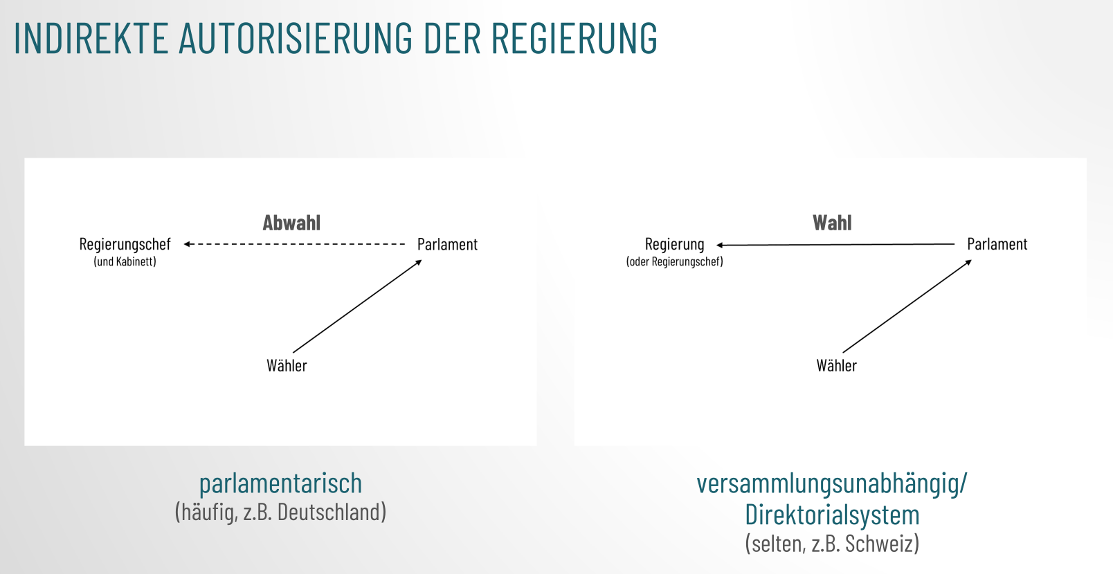 - Wird die Regierung direkt von den Wählern oder indirekt über das Parlament autorisiert? Und wie genau? Regierungssystem