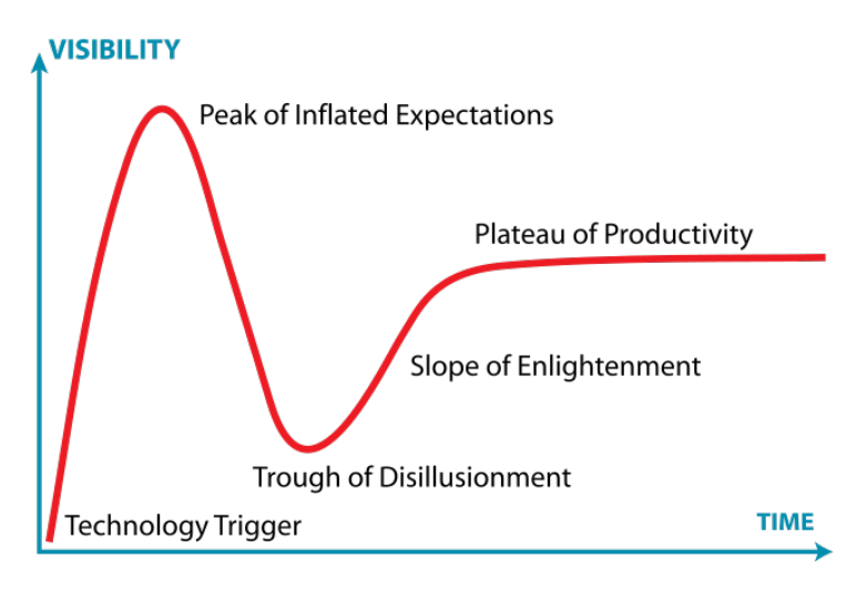 5. Plateau of Productivity: Mainstream adoption starts to take off. Criteria for assessing provider viability are more clearly defined