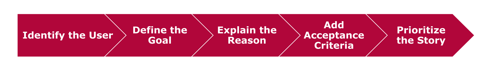 4. Acceptance Criteria: set the expectations that have to be met for the user story to be closed | often written as a checklist of specific requirements