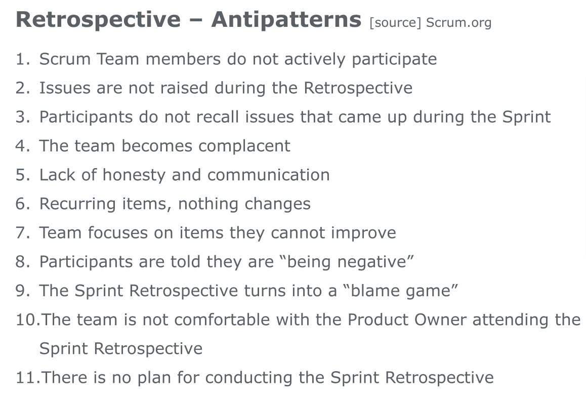 • Scrum Team: sollte konkrete Aktionen zur Prozessverbesserung für den nächsten Sprint identifiziert haben
